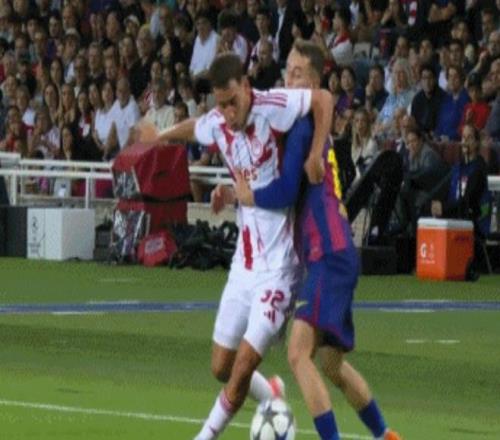 不过,就在奥林匹亚科斯的气势重新起来后,裁判的一次争议判罚改变了比赛的走向。第57分钟,奥林匹亚科斯球员赫泽与巴萨球员卡萨多争抢皮球。卡萨多有一个抱人的动作,但赫泽并没有倒下。